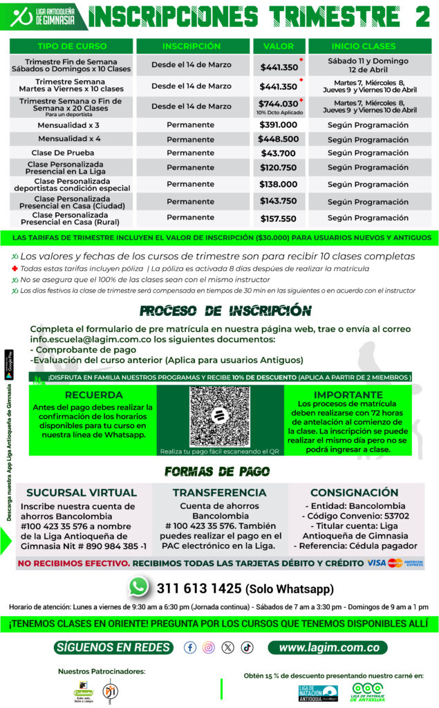 Conoce el proceso de inscripción, los documentos requeridos y las formas de pago que manejamos en la Liga Antioqueña de Gimnasia para que empieces a practicar el mejor deporte del mundo